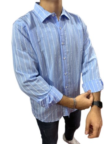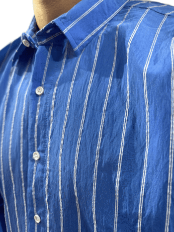 Mastiff Çizgili Keten Spor Gömlek Mavi