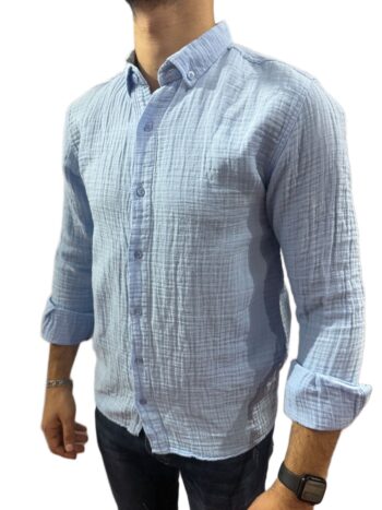 Erkek Mavi Dokulu Kısa Kollu Gömlek