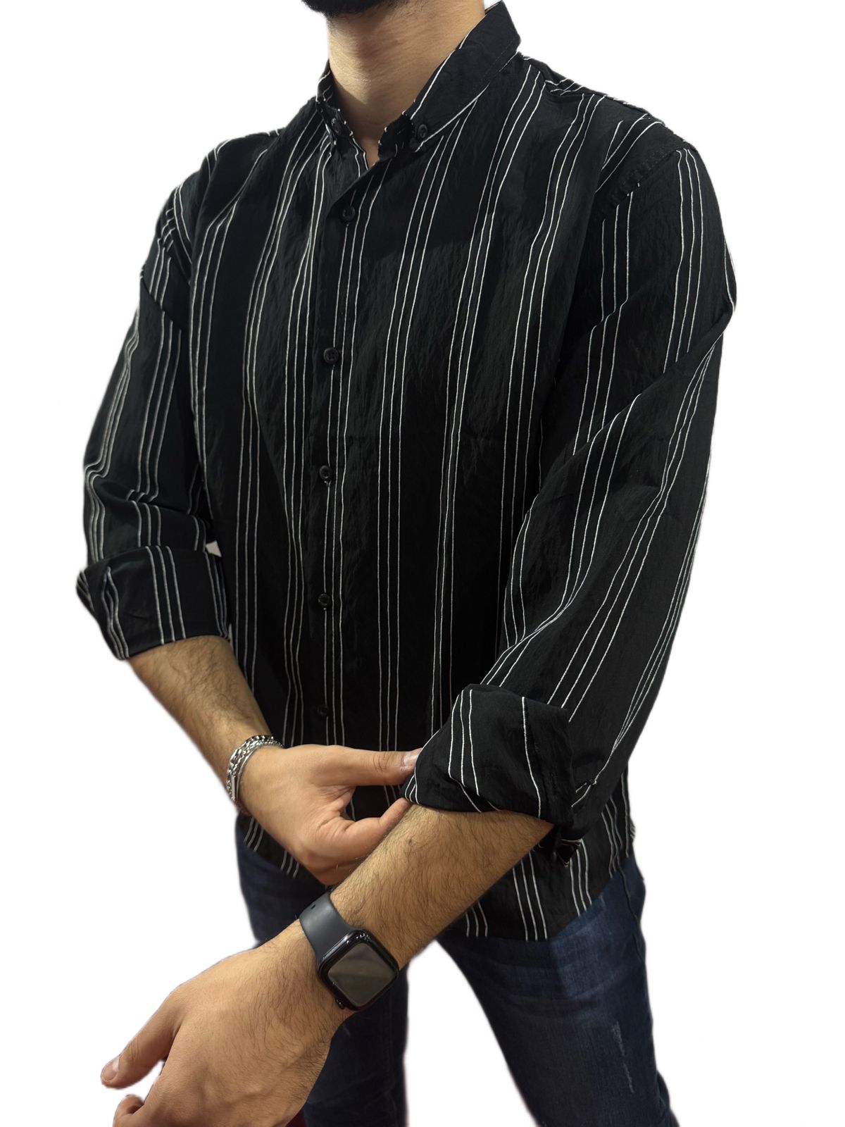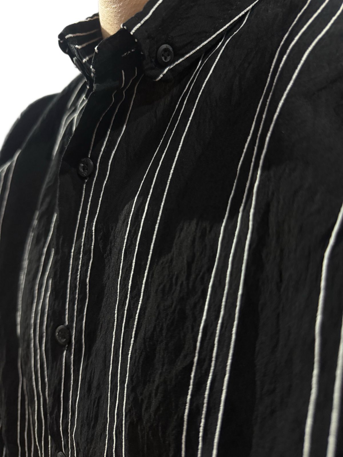Lastman Oversize Çizligi Keten Gömlek Siyah